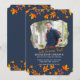 Um convite fotográfico impressionante com um fundo azul-marinho com folhas caindo em dourado e laranja. A janela da foto tem um formato poligonal único. Projetado por Katemangostar. Projetado por Starline. O cartão é fácil de personalizar com sua redação, fonte e cor da fonte. Não é exatamente o que você está procurando? Todos os nossos produtos podem ser personalizados para atender às suas necessidades sem custo adicional. Basta entrar em contato conosco em askcottonlamb@gmail.com. Produtos coordenados disponíveis: Basta perguntar!