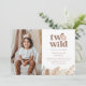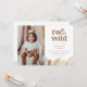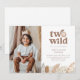 Este convite de aniversário apresenta um doce rosto de leão em aquarela com a frase "dois selvagens", acentuado por folhas da selva em tons neutros ao longo da parte inferior. Você pode adicionar sua própria foto do menino ou menina aniversariante também. Perfeito para uma celebração de segundo aniversário com tema de safári!