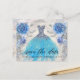 Convites de cartão-postal de Quince Anos com elementos florais azuis e cinzas em um fundo pérola brilhante. Personalize com sua foto e detalhes no verso.