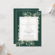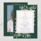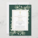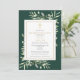 Um convite de lembrança de celebração da vida personalizado e elegante com folhagem botânica em aquarela em um fundo verde esmeralda. Criado por Thisisnotme©