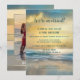 Um convite apenas para recepção de casamento romântica, após ou depois do casamento, apresentando uma pintura original de arte fina de um pôr do sol na praia. O verso mostra sua foto favorita (do casamento) com uma bela moldura listrada sonhadora.