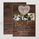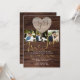 Celebre o seu aniversário de casamento com estilo com estes convites de aniversário de casamento com tema rústico elegante e moderno. Eles apresentam um gráfico de um coração de madeira gravado romântico para você adicionar as iniciais dos nomes do casal de marido e mulher. Mostre o que significa o verdadeiro amor com as suas fotos de casal. Você pode adicionar três fotos no total. Por que não adicionar uma foto de quando vocês se conheceram, quando se casaram e uma de vocês dois agora para dar um impacto extra e criar um convite único que os seus convidados da festa de aniversário de casamento irão guardar. Para obter assistência e suprimentos para a festa que combinem, entre em contato com o designer aqui.