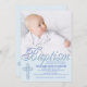 O fundo azul suave tem a palavra "Batismo" escrita na sua fronteira superior e pendura sobre a foto do seu bebê. É embelezado com uma intrincada cruz azul. Um convite elegante e na moda. O cartão é fácil de personalizar com seu texto, fonte, cor da fonte, opções de forma de papel e escolha de seis tipos de papel. Não exatamente o que você está procurando? Todos os nossos produtos podem ser personalizados para atender às suas necessidades sem custos adicionais. Basta entrar em contato conosco em askcottonlamb@gmail.com Coordenando produtos disponíveis: Blue Cross Obrigado Notecard