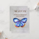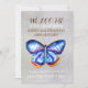 Belo azul, borboleta aquática e um fundo canvas, elegante, personalizado, convite de casamento rústico.