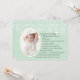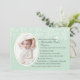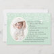 Uma adorável cobertura de flores brancas passa por um fundo verde macio. A janela oval segura a foto do seu bebê. Este é um convite versátil que pode ser usado quase em qualquer ocasião. A cruz branca pode ser eliminada, arrastada para qualquer posição, maior ou menor.