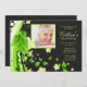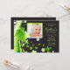 Um convite encantador com as cores verdes frescas de primavera. O fundo preto tem fluxos em cascata de folhas, flores e borboletas e uma janela fotográfica.O cartão é fácil de personalizar com seu texto, fonte, cor da fonte e escolha de seis tipos de papel.
