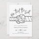 Deixe todos saberem que você disse sim com este convite de fuga romântica minimalista "nós amarrámos o nó". Este convite é perfeito se você disse "eu aceito" em uma cerimônia privada e agora quer celebrar com todos. Ilustrado com um belo nó, é 100% personalizável com suas informações!