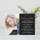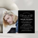 Os momentos preciosos da vida merecem ser homenageados com cuidado e elegância. Este Convite de Funeral de Celebração de Vida Preto Personalizável permite que você crie uma homenagem tão única quanto seu ente querido. Com um fundo preto elegante que pode ser personalizado de acordo com sua preferência e um espaço para uma foto querida, este convite oferece uma maneira sofisticada e sincera de comemorar uma vida bem vivida.