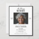 Modelo de convite para cerimônia memorial elegante preto e branco, apresentando um layout minimalista moderno, perfeito para homenagear um ente querido com estilo atemporal. Este design apresenta uma área de foto centralizada emoldurada por bordas pretas grossas, combinada com tipografia serif clássica para o nome e as datas, e delicados acentos cursivos para um toque pessoal. A simples paleta de cores preto e branco confere um tom refinado e digno, adequado para anúncios de funeral ou cerimônias de celebração da vida. Ideal para quem procura convites memorial personalizáveis com uma estética limpa e profissional, este cartão frente e verso acessível inclui espaço para 2 fotos e detalhes claros do evento em um formato fácil de ler.
