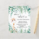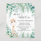 Para o primeiro aniversario do bebê. Um fundo branco. Uma girafa de bebê girafa e eucalipto verde e samambaias. Personalize e adicione o nome e os detalhes da festa. Texto: Selvagem Um