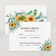 Um conjunto de convites de casamento rústicos com girassóis em aquarela em cores suaves de outono com um fundo de madeira.
