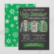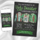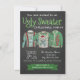 Convite de festa de Natal de suéter feio com três suéteres feios engraçados em um quadro-negro e fundo de flocos de neve. Você pode personalizar facilmente esses convites divertidos de festa de Natal de suéter feio para o seu evento, simplesmente adicionando seus detalhes.