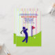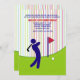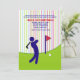 Um design divertido com uma silhueta de golfe no verde contra um fundo listrado colorido. Adequado para sexo e qualquer idade.O cartão é fácil de personalizar com seu texto, fonte, cor da fonte e escolha de seis tipos de papel.
