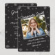 Celebre seu graduado com este convite e anúncio de formatura em foto com boinas de graduação em confetes desenhados à mão em preto e rabiscos. O fundo apresenta boinas de graduação espalhadas que lembram confetes, combinadas com uma moldura desenhada à mão e uma borla para um visual divertido e sofisticado. Os detalhes ilustrados adicionam personalidade, mantendo o estilo geral moderno e atemporal.