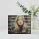 Este convite de formatura com foto moderno e elegante apresenta um overlay de barra lateral com script de graduado e nome, escola e foto personalizáveis na frente. O verso oferece parabéns e detalhes do evento com mais 3 fotos adicionais. Uma ótima maneira de mostrar seu graduado.