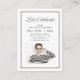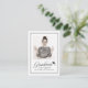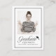 Convite de formatura simples em preto e branco com tamanho mini, apresenta fonte serif elegante e graciosa e letra script com fotos em preto e branco, simples e sofisticado. Personalize com sua própria foto e informações da festa de graduação no verso.