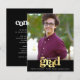 Sinta-se orgulhoso, alegre e mostre esse marco do seu graduado favorito! Envie este convite de anúncio de foto personalizado, simples, moderno e dentro do orçamento para um evento inesquecível. Tipografia gráfica em falso dourado, ícone de boné, tipografia branca e uma faixa preta sobreposta a uma foto de sua escolha. Personalize o texto personalizado com o nome do graduado, escola e ano de conclusão. No verso, adicione sua nota pessoal, próxima escola que eles irão frequentar, informações da festa, etc. Garantido que irá adicionar diversão estilosa à ocasião especial deles!