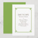 Anúncio de Save the Date Deco Chic simples e minimalista com uma moderna moldura ornamental art déco verde. Este convite de save the date clássico e elegante é fácil de personalizar com os detalhes do seu casamento. Encontre mais opções de personalização clicando em Personalizar.