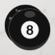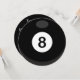 Este piscina de bilhar esportiva sobre o tema convite de festas redondo apresenta uma bola de oito preto e branco na frente. A parte de trás do convite tem modelo para personalizar com as informações da sua parte.