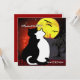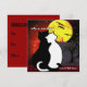 O convite para o cartão de Halloween é feito por um casal de gatos assistindo aos fogos de artifício enquanto uma grande lua amarela sobe no horizonte. Personalize-o com suas próprias palavras