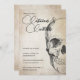 Convite de Vintage Halloween para adultos com crânio antigo desenhado em fundo envelhecido. Figurinos e Cocktails Convite para o Dia das Bruxas, todos os textos podem ser alterados. O convite está do lado de trás. Procure outros itens de Halloween na coleção de Halloween.