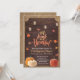 Convite de Inauguração de Casa de Outono Rústico com Abóboras, Luzes de Corda, Folhas e Brilho de Madeira Home Sweet Home