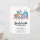 Convites de festa de solteira de férias fofos com uma seleção de itens de viagem em aquarela, incluindo malas, câmera, mapa, etc., e um modelo de festa de solteira elegante que é fácil de personalizar. O itinerário do fim de semana está no verso!