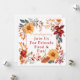 Reúna as pessoas favoritas para um banquete de amigos, comida e diversão com este convite impressionante de Ação de Graças dos Amigos. Com uma bela moldura floral em aquarela em tons quentes e ricos de outono, este design captura perfeitamente o espírito aconchegante e festivo da estação. A fonte elegante anuncia "Ação de Graças dos Amigos", com uma sub-mensagem divertida de "amigos, comida e diversão". Combine com guardanapos e pratos de papel correspondentes!