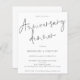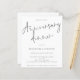 Jantar de Aniversário de Casamento com Orçamento Simples. Uma alternativa de tamanho menor, 4,5” x 5,6”, com preço acessível. Disponível em PAPEL CARTÃO 110 lb SEMI-BRILHANTE (opção padrão, mais grosso para convites) OU PAPEL 80 lb COM ACABAMENTO EM SEDA (mais fino, ideal para enclosures). Os envelopes são opcionais e são ligeiramente maiores que o tamanho do cartão. Mostrado em preto e branco clássico. Este design moderno tem um conjunto de letras informal elegante para Jantar de Aniversário e o restante da tipografia pode ser facilmente personalizado. Você também pode alterar as cores do texto e do fundo em ambos os lados, se desejar, através da opção Personalizar Mais.