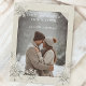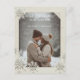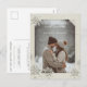 Convide sua família e amigos mais próximos para uma celebração íntima após seus votos privados ou casamento no cartório. Envie cartões-postais de Natal e ao mesmo tempo convide-os para um jantar de casamento aconchegante. Este cartão-postal de Natal personalizável apresenta um design romântico de neve decorado com flocos de neve delicados e a doce frase “O para sempre começa neste inverno.” Adicione sua foto favorita e personalize com nomes, datas ou uma mensagem sincera. Perfeito para casais que desejam um casamento íntimo e pequeno neste inverno.