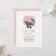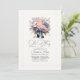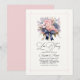 Celebre com estilo com este convite de jantar de ensaios elegante, apresentando um buquê deslumbrante de rosas cor-de-rosa pastel, hortênsias e lírios adornados com um laço azul-marinho sofisticado. A borda rosa delicada e as fontes de texto graciosas adicionam um toque atemporal, tornando-o perfeito para celebrações de casamento formais ou românticas. Totalmente personalizável para se adequar aos detalhes do seu evento.