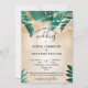 Está planejando o casamento no destino da praia da ilha tropical? Convide seus convidados com este lindo convite com ilustração de luzes de fada cintilantes em jarro de luz e folhas de palmeira tropicais no fundo dourado
