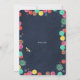 Um convite de festa de verão, com letras à mão e pontos coloridos e lampions ao redor