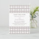 Anúncio de Salvar a Data simples e elegante em latte com um padrão art déco estiloso. Este convite de salvar a data é fácil de personalizar com os detalhes do seu casamento. Clique em "Personalizar" para encontrar mais opções de personalização.