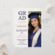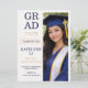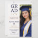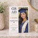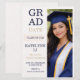 Design moderno de layout dividido com fundo texturizado creme, tipografia de graduado empilhada em negrito e painel de retrato vertical em tons de azul-marinho e champanhe. Projetado para anúncios de formatura do ensino médio que destacam um retrato de formatura enquanto compartilham detalhes da cerimônia e celebração.