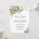 Linda guirlanda floral em aquarela misturada com cores rosa, pêssego e blush. Muito bonito. Os nomes são feitos em letra cursiva elegante e sofisticada.