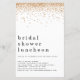Convide Luncheon, Chá de panela Dourado e brilhante. Um tamanho maior de 5,5" x 8,5" a um preço orçamentário, em um STOCK CARD SEMI GLOSS de 110 lb, excelente de convites, aproximadamente na mesma espessura de um cartão postal, ou um estoque LINEN elegante de 110 lb - para um luxo, ligeiramente mais fino, com um valor de excelente. OBSERVE QUE OS ENVELOPES OPCIONAIS SÃO UM POUCO MAIORES EM TAMANHO A 6,75" x 9" aprox. Este alternativo de tamanho de orçamento também está disponível em outras opções de papel. O papel FELT de 100 lbs é colorido por buff, NÃO branco, então adiciona um toque rústico. O estoque de papel MATTE de 80 lb é branco brilhante, para impressão nítida, excelente para seus menus e programas, enquanto o papel SATIN de 80 lb é fino e leve, ideal para gabinetes. Uma borda de ouro falso brilhando em cada lado por um pequeno brilho. O cabeçalho da ocasião é grande em na moda com os detalhes na parte inferior. Personalize facilmente o texto para seus próprios detalhes.