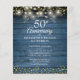 Com luzes de corda e confetes delicados de coração de amor dourado em um fundo de madeira rústica. Personalize com as informações do seu aniversário de cinquenta anos em letras elegantes. Criado por Thisisnotme©