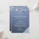Cardápio de recepção de casamento com luzes de corda, renda e jeans azul. Celebre seu casamento na recepção com estilo e charme com este cardápio de jeans falso. Personalize com as opções de prato principal.