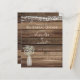 Luzes de Corda de Fazenda Rústica Orçamentária e Convites de Jantar de Ensaios com Jar de Respiradouro de Bebê em Fundo de Madeira - inclui tipografia de roteiro bonita e elegante com brilho moderno de Fazenda Country para a celebração especial do dia do casamento.
