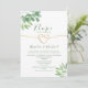 Convide os seus entes queridos para testemunhar a sua celebração íntima com este elegante convite de micro casamento. Com folhas de eucalipto em aquarela verde suave, um delicado coração de corda dourada e letra minimalista, este design 5x7 é perfeito para casamentos secretos, cerimônias privadas e recepções discretas. Personalize com facilidade para combinar com o seu dia especial.