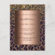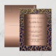 Um convite elegante, legal, glamouroso e feminino para uma festa de aniversário da 50ª (ou qualquer idade) com um padrão leopardo castanho, ouro e preto, decorado com confete ouro. Uma estrutura metálica de bronze em falso, com espaço para informação do seu partido. Fundo: fundo metálico de bronze falsa. Este cartão também está disponível em nossa loja sem qualquer cor de fundo na parte traseira. Dica: Se você não quiser que pareça um cartão postal, clique em personalizar, vá para o verso e remova o divisor e o carimbo de posto.