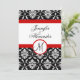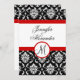 Convite de Monograma de Casamento Vermelho Damasko
