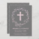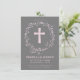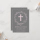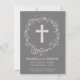 O elegante e moderno batismo de 4,5" x 6,25" ou convite batizante apresenta uma cruz rosa e uma coroa floral. Tem uma design feminina bonito e pode ser personalizada para a ocasião religiosa especial do seu bebê.