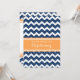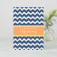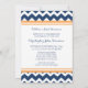 Azul escuro e marinho escuro moderno e colorido e zigzags cor de laranja listram o convite para o rapaz.