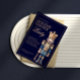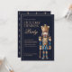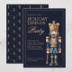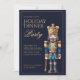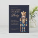 Espalhe alegria natalina com nosso convite de festa de Natal elegante e atemporal. Contra um fundo azul escuro rico e apresentando uma ilustração clássica de quebra-nozes, este design traz um toque de sofisticação festiva para a sua celebração. O layout limpo e refinado e a letra serifada graciosa criam uma atmosfera quente e convidativa antes mesmo que a festa comece.