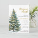 Convite de festa de Natal moderno com árvore de Natal e sotaque dourado.