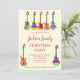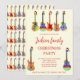 Convites de festa de Natal com tema de guitarra psicodélica. Guitarras acústicas, guitarras elétricas e ilustrações de guitarra semi precisas, cada uma com um chapéu de Papai Noel engraçado. Personalize este convite de festa festivo e colorido e espalhe a alegria natalina. Ideal para músicos, guitarristas e amantes da música. Arte original da artista Catherine Sweetman