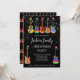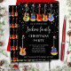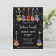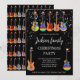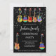 Convites de festa de Natal psicodélicos e legais com guitarra. Ilustrações de guitarras acústicas, guitarras elétricas e semi-acuradas, cada uma com um chapéu de Papai Noel engraçado em um preto de rock and roll legal. Personalize este convite de festa festivo colorido e espalhe alegria natalina. Ideal para músicos, guitarristas e amantes da música. Arte original da artista Catherine Sweetman