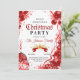 É hora do Natal, vamos convidar seus amigos e familiares, Este convite elegante vermelho e branco inclui decorações de árvore de Natal, flocos de neve brancos e fitas vermelhas.
